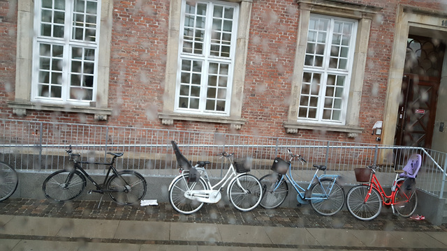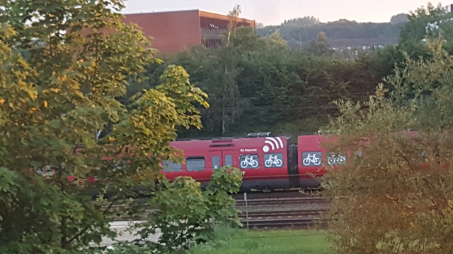 숙소에서 일어나 창문 밖을 내다보니 빠알간 기차가 지나간다. 예쁜 기차들이 자꾸자꾸 지나가니 자전거 그림이 있는 창 역시 코펜하겐은 친환경 자전거가 많다. 거리에도 전철 에도 ^*^ 숙소주변 산책에서 만난 전철 속으로 들어가 보니 참 건물들이 심플하였다, 전철 뒷쪽에 자전거 보관장소도 있고 친환경 사회 모습들 자전거들이 즐비하다.