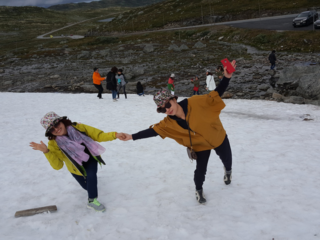 광활한 툰드라 지역을 드라이브하면서 툰드라지역에서 자라는 작은 키 나무들 그리고 바위바위들 뛰엄뛰엄 작은 집들을 보면서 저곳에 사는 사람들은 어떤 사람들이며 무엇을 하고 살며 무엇을 먹고 살아 나가는지 궁금하였다. 툰드라 드라이브 끝지점쯤 만년설 언덕 스키장같은 얼음 덮힌 곳에서 신발스키를 타고 눈위에서 잠시 겨울을 체험하였다.