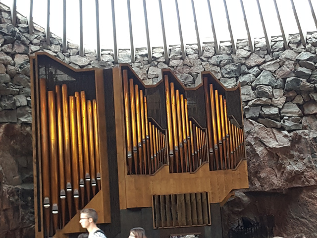 암석교회 내부 파이프오르간이 있는 일부분을 찰칵해보았다. 암석교회는 돔형식의 외관과 내부는 성스러운 분위기에 벽 장식이 특이하고 경이롭다.
