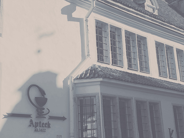 러시아에서 독립한 에스토니아라는 작은 나라를 찾았다, 규모는 작지만 아름다운 도시 중심을 감상했다. 구시가지에 있는 오래된 약국 1422년이이라고 보이듯이 벽면에 뱀모양의 약국이니셜이 특이하다.