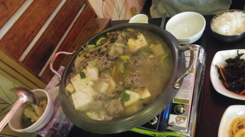 저녁으로 먹은 불고기에 소주 똭 가이드님이 사비로 사주신 소주