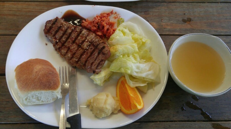 산장에서 먹는스테이크는 꿀맛