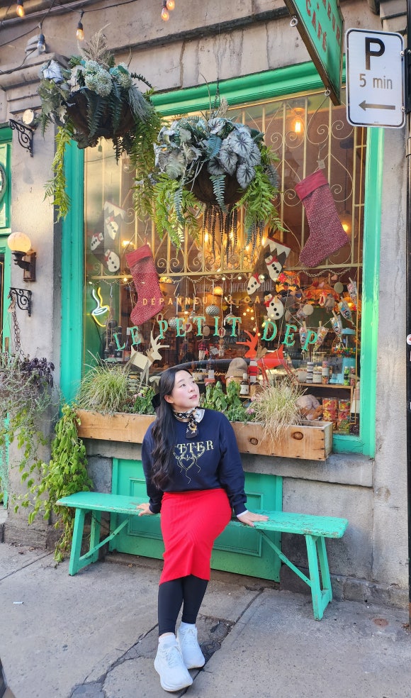 2) 몬트리올 시내관광 - 노틀담 성당 앞에서 사진찍고, 자유시간이라서 거리를 돌아다녔는데 정말 예뻤다! 할로윈이나 크리스마스 장식도 많이 되어있고, 프랑스느낌이 물씬 나는 도시였다. 여기서 인생샷 건졌다 :)